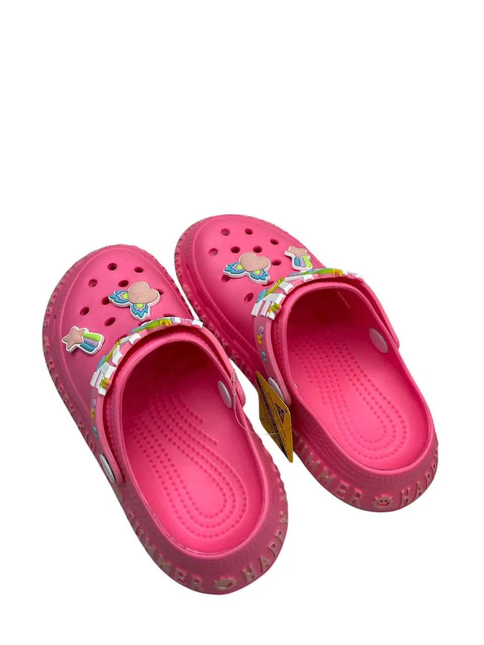 Легкі та комфортні сабо — це ідеальний вибір для сонячних літніх днів! Вони подарують ніжкам свободу та забезпечать легкість кожного кроку під час прогулянок, відпочинку біля води чи ігор на свіжому повітрі. Завдяки відкритому дизайну та якісним матеріалам, ці сабо чудово пропускають повітря, дозволяючи шкірі дихати навіть у спеку. Оберіть сабо, які гармонійно поєднують яскравий стиль і неперевершений комфорт, щоб літо вашої маленької модниці було наповнене радістю та яскравими враженнями.